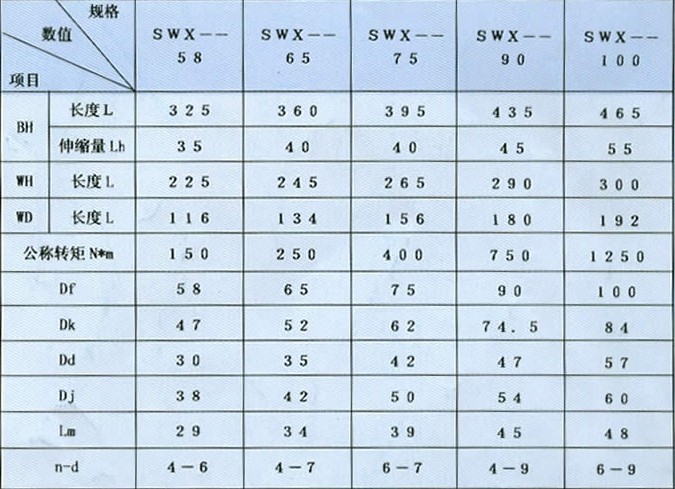 小規(guī)格萬(wàn)向聯(lián)軸器基本參數(shù)和主要尺寸